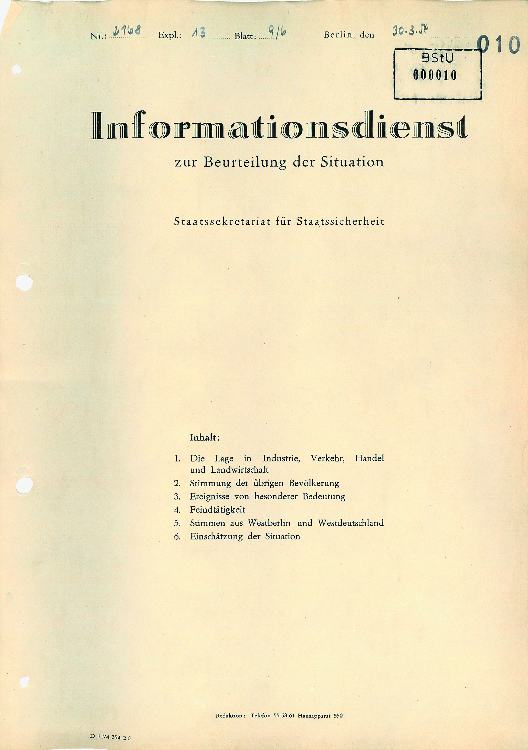 Faksimile des Deckblatts von Informationsdienst Nr.